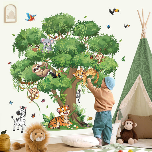 decalmile Large Jungle Animals Tree Branch Wall Decals Safari Lion Leopard Koala Monkey Wall Stickers(XL)