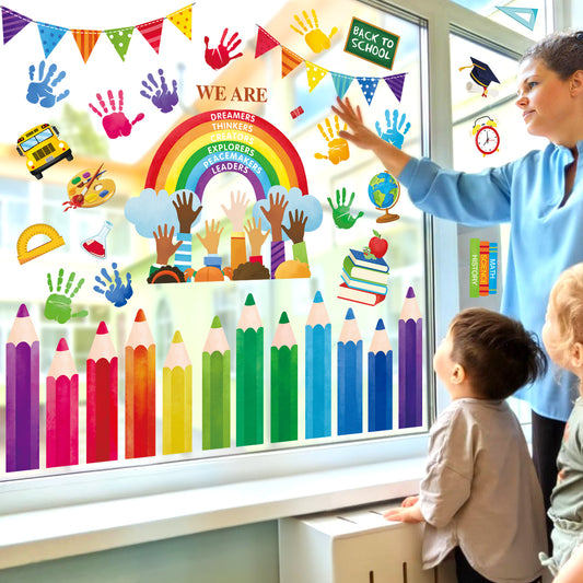 decalmile Back to School Rainbow Colorful Pencils Double Sided Window Clings Window Decals Anti-Collision Window Stickers