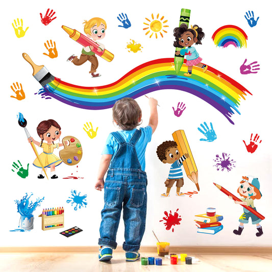 decalmile Reading Corner Rainbow Wall Decals Colorful Handprint Splatter Educational Wall Stickers