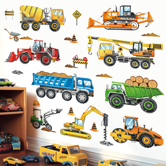 decalmile Construction Vehicles Wall Decals Cars Truck Tractor Wall Stickers