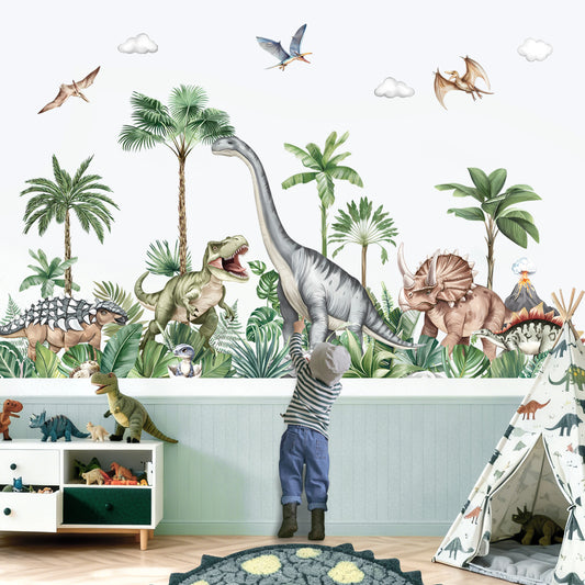 decalmile Large Dinosaurs Wall Decals Dino Tropical Triceratops Wall Stickers