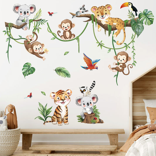 decalmile Jungle Animals Safari Wall Decals Lion Monkey Koala Wall Stickers