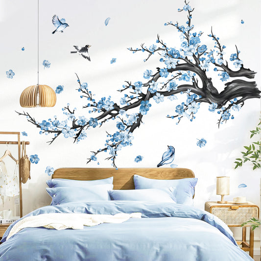 decalmile Blue Flower Branch Wall Decals Watercolor Blossom Floral Tree Branches Wall Stickers