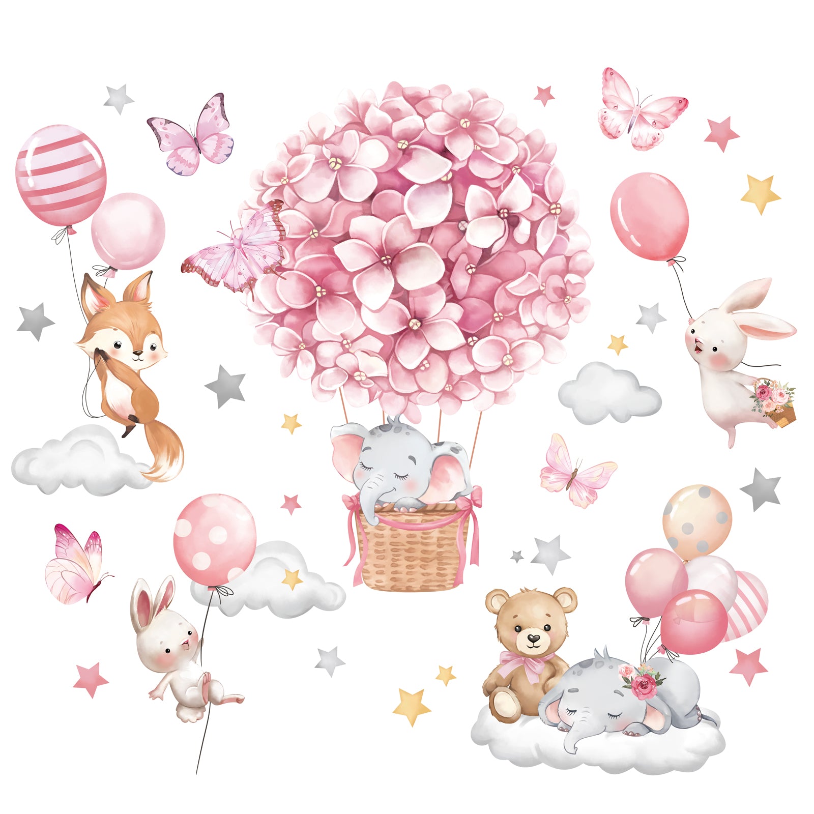 decalmile Animals Hot Air Balloon Wall Decals Flowers Balloons Elephant Bear Wall Stickers