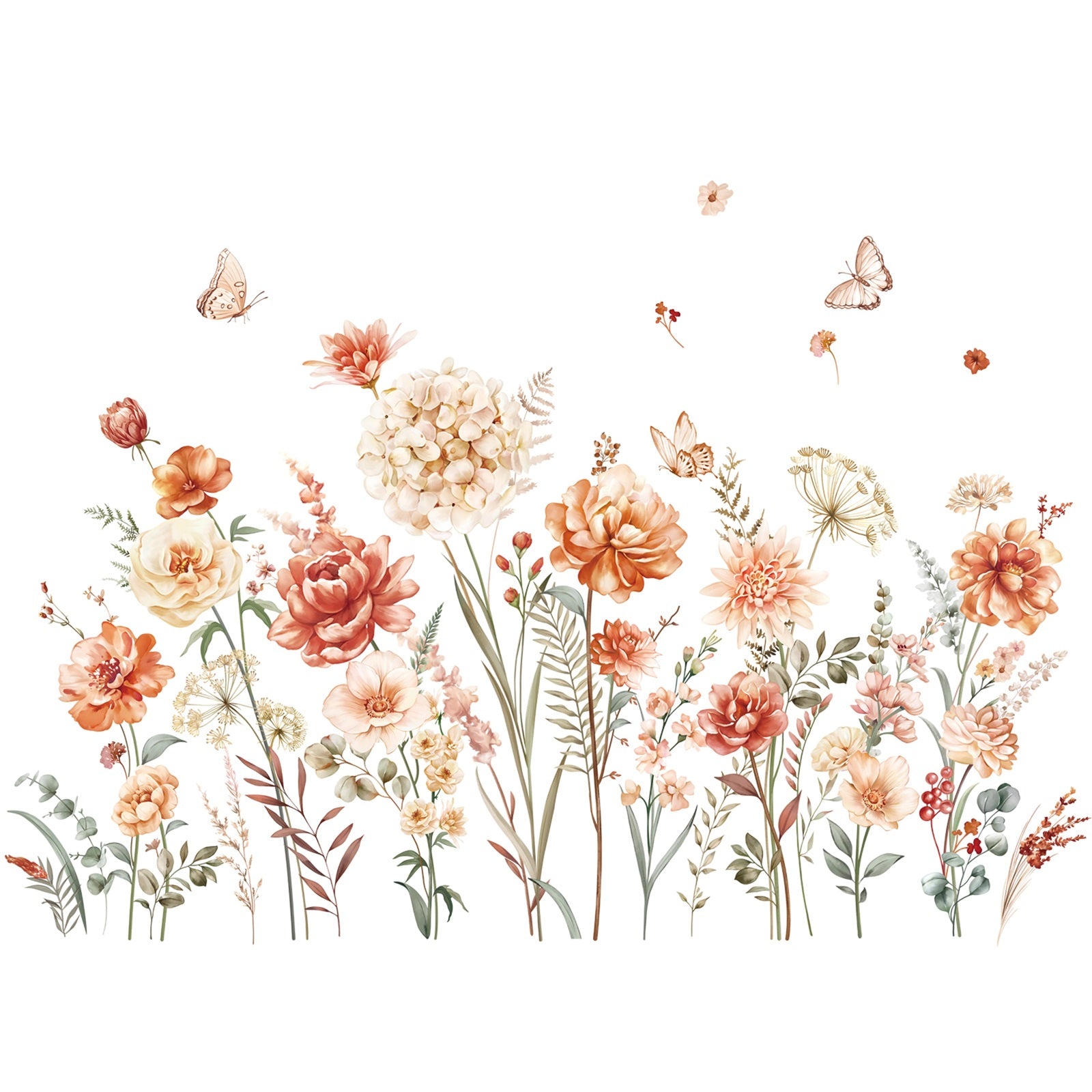 decalmile Boho Flower Wall Decals Wildflower Garden Floral Grass Wall Stickers