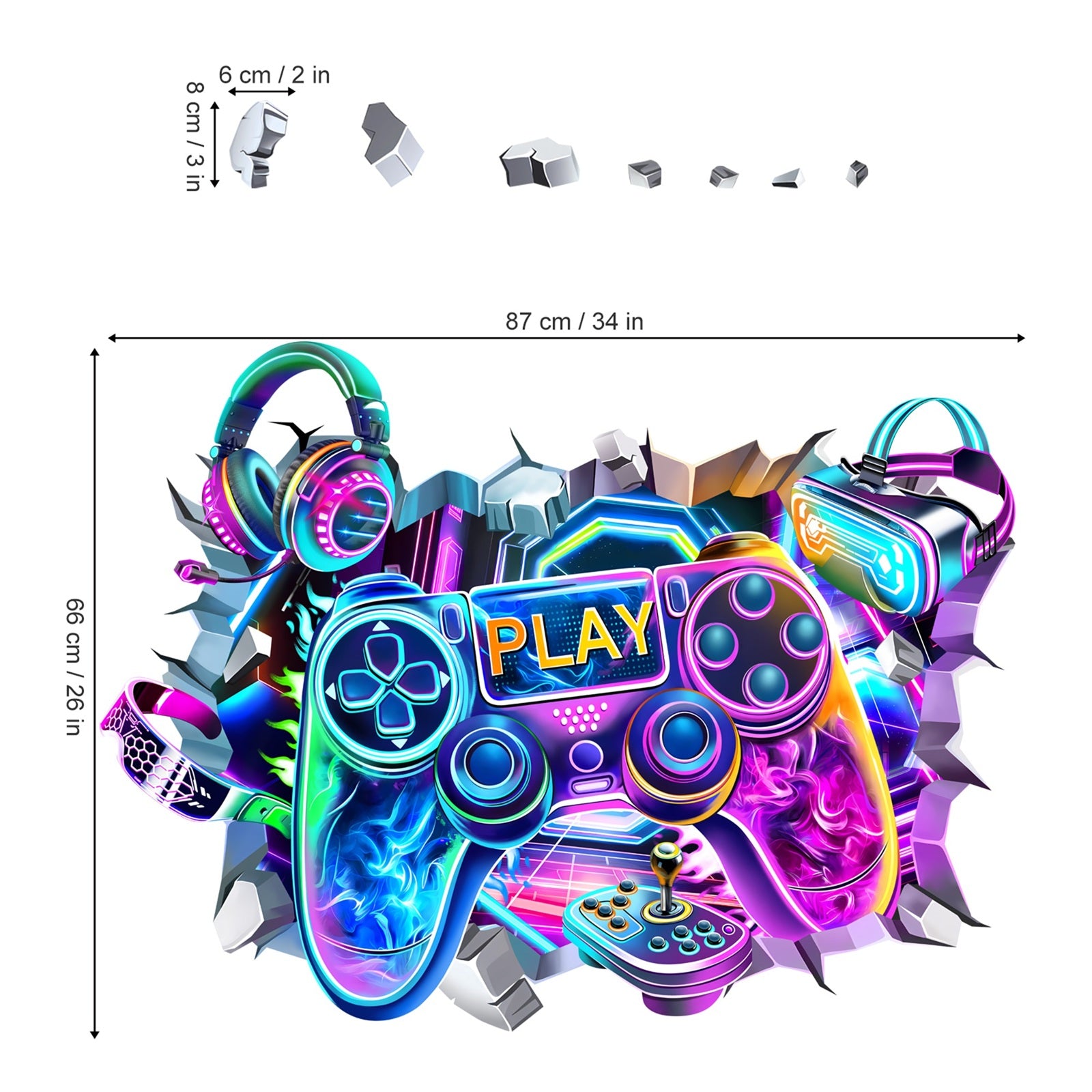 decalmile Large 3D Game Wall Decals Video Gaming Gamer Controller Joystick Wall Stickers
