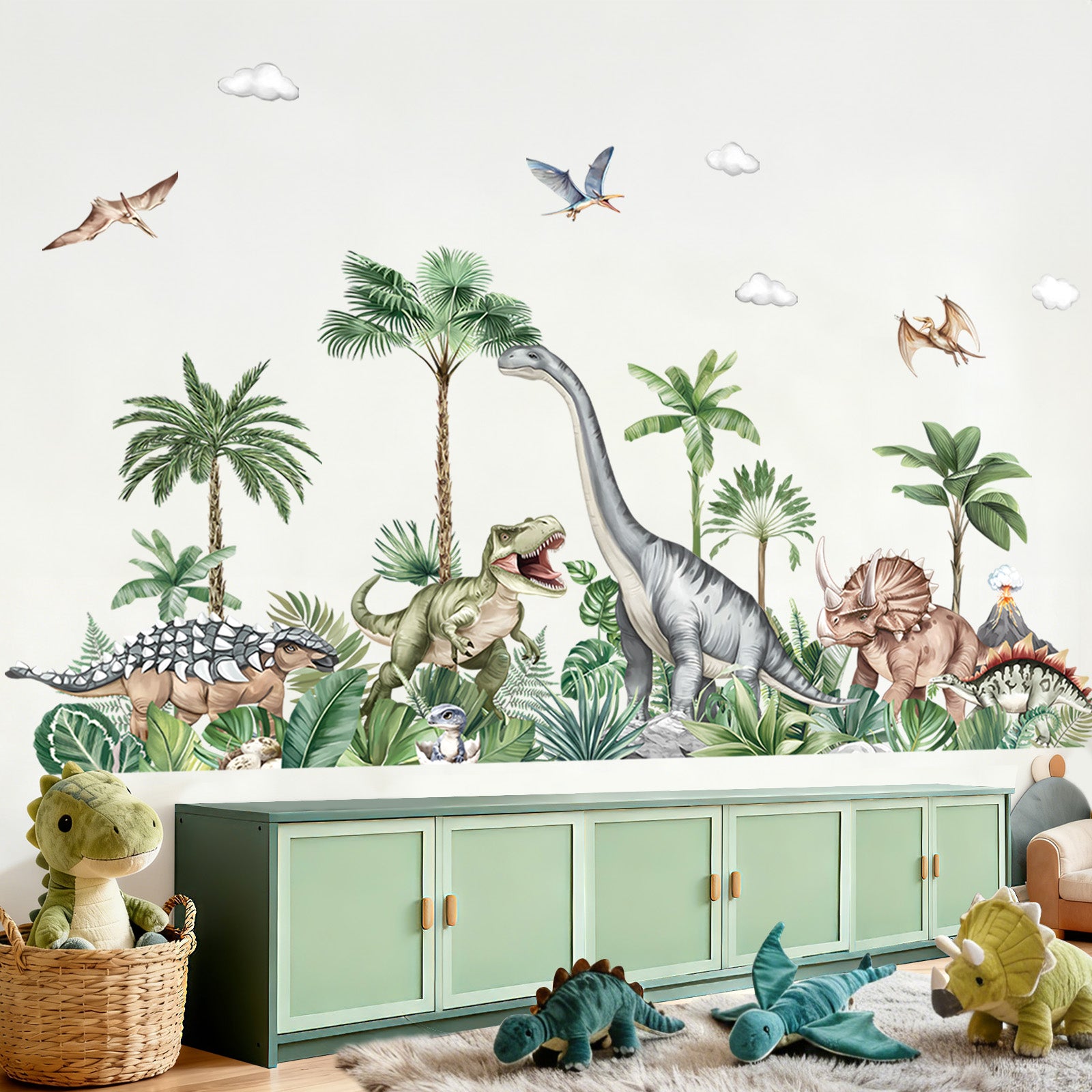decalmile Large Dinosaurs Wall Decals Dino Animal Tropical Palm Tree Wall Stickers(XXL)