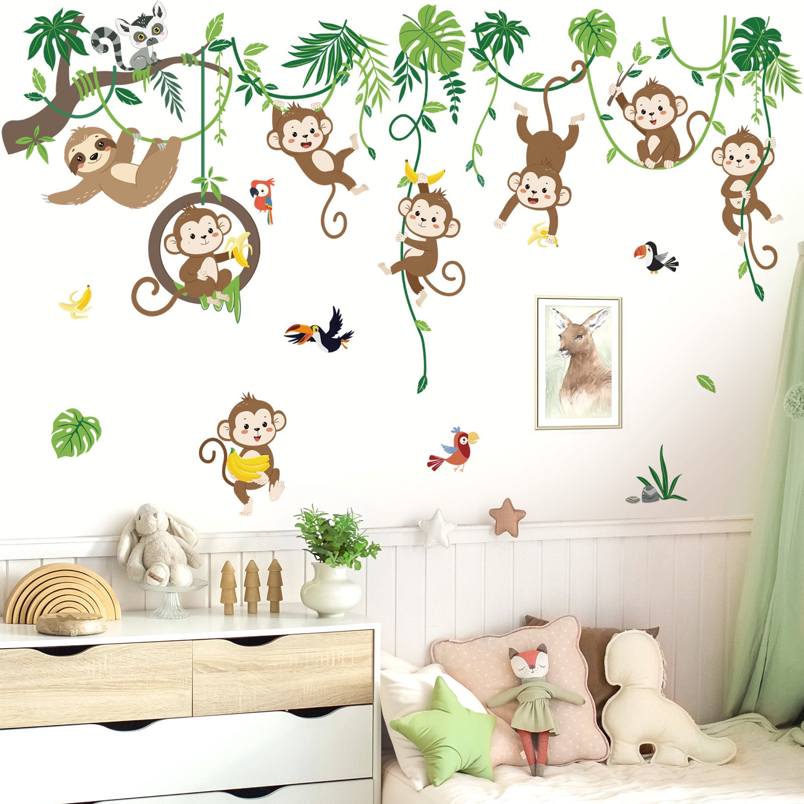 decalmile Monkey Climbing Tree Wall Decals Jungle Animals Tree Branch Sloth Wall Stickers