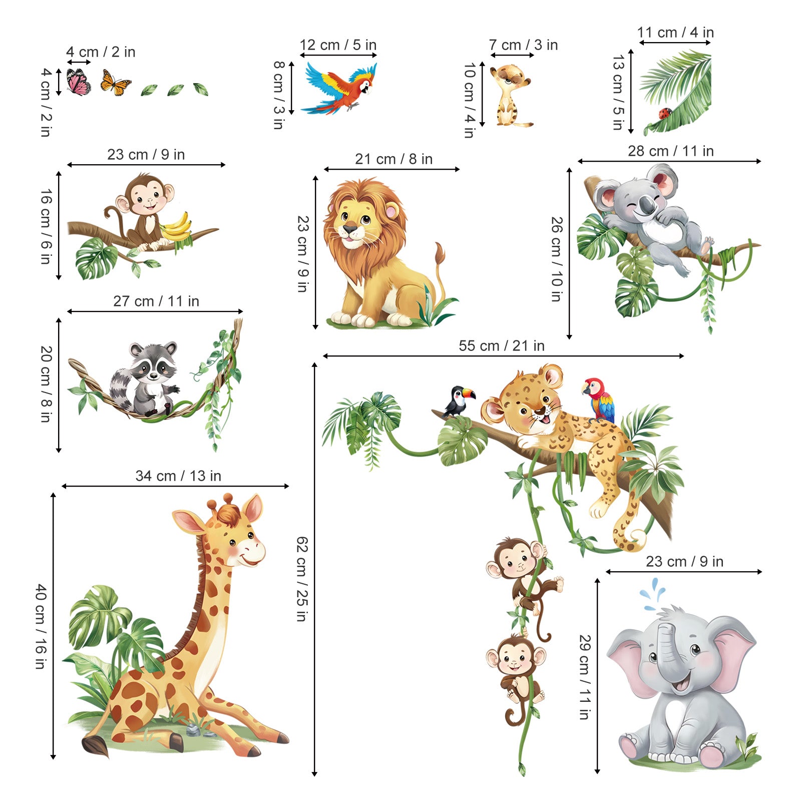 decalmile Safari Animals Tree Branch Wall Stickers Jungle Animals Giraffe Elephant Leopard Wall Decals