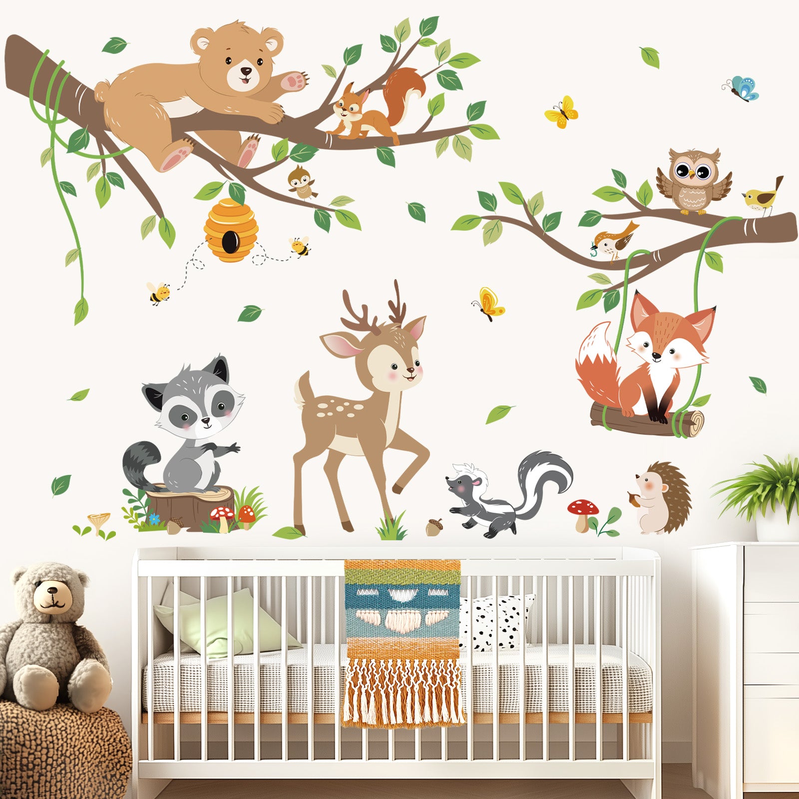 decalmile Woodland Animals Tree Branch Wall Decals Forest Animals Bear Deer Fox Wall Stickers
